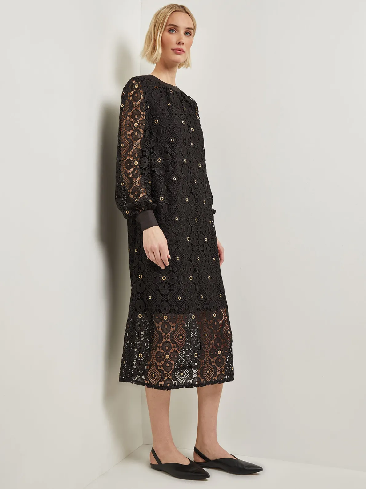 Our Maxi Gold Grommet Shift Dress features a lace overlay with delicate grommet detail. You can choose to wear this dress with or without the belt, giving you freedom to control your desired silhouette.