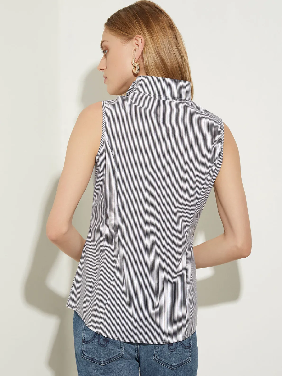 Pinstripe Sleeveless Stretch Cotton Blouse, Black/White