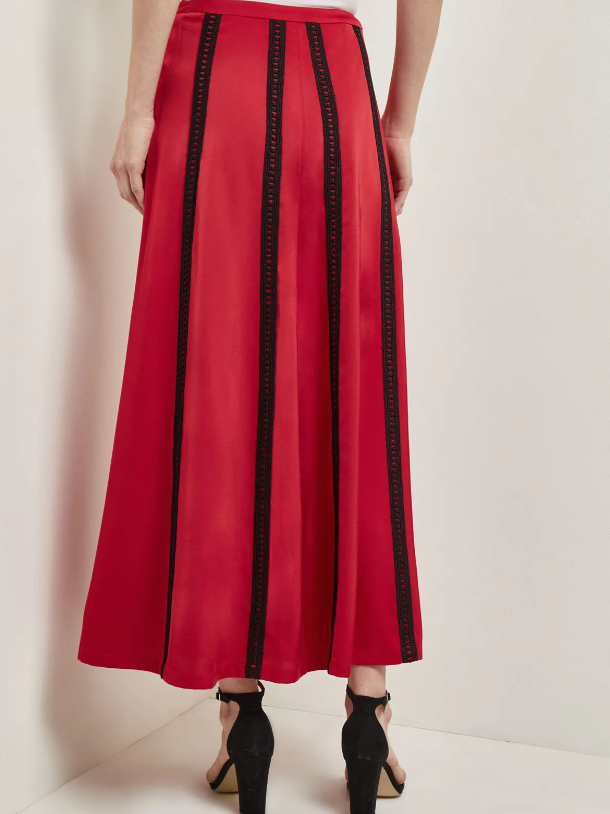 Our A-Line Lace Applique Maxi Skirt is crafted with a luxurious Crepe De Chine. The lace appliques are handsewn onto the garment, making every piece special. Pair this skirt with the matching blouse for a complete ensemble.