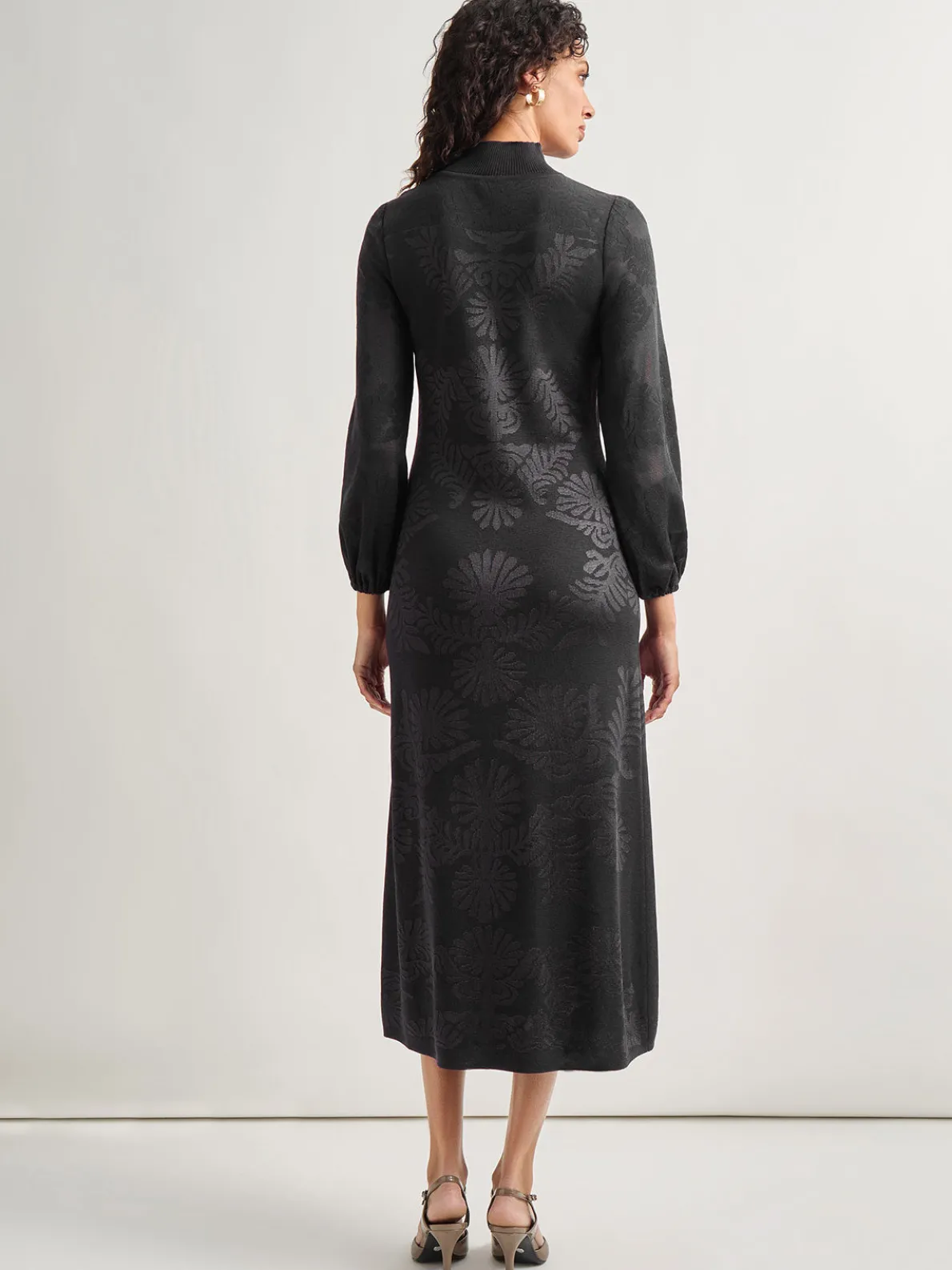 Our Jacquard Knit Mock Neck Maxi Dress is an occasion-ready staple with a fascinating Rouge textural print. This remarkable dress features a combination of romantic details including a graceful mock neck collar and voluminous Bishop sleeves. Its classic A-Line silhouette flows elegantly from the body, creating a relaxed yet flattering form.