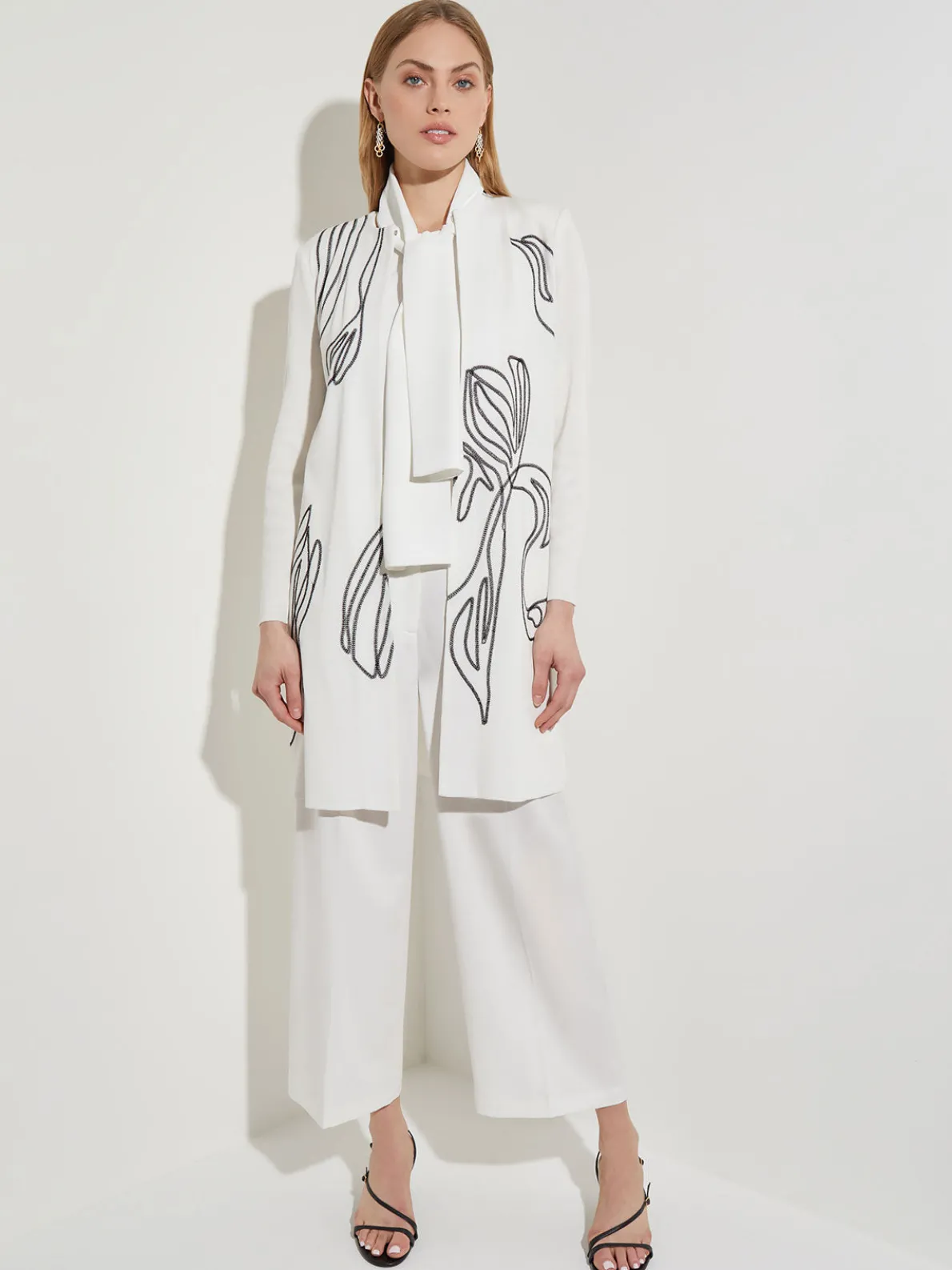 Slip into our Relaxed Fit Jacket, crafted to redefine comfort and style. Immerse yourself in the sumptuous embrace of our Soft Knit fabric, providing a luxurious touch against your skin. The abstract embroidery adds a distinctive and artistic flair, making this jacket a standout piece for any occasion. Designed with discreet shoulder pads and side slits, this jacket offers a polished and structured silhouette.